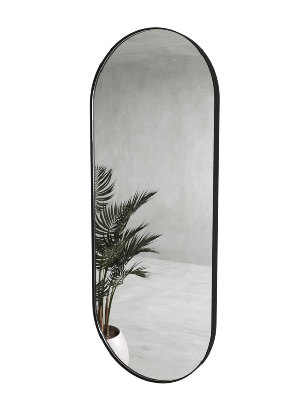 Дизайнерское овальное настенное зеркало Glass Memory Harmony в металлической раме черного цвета в Пушкине