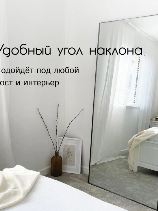 Зеркало «Parallax». Артикул GMZ-8-2-1/2/3 Большое зеркало в полный рост, которое с уверенностью можно назвать парадным. Простая прямоугольная форма без каких-либо излишеств позволяет использовать это зеркало в любых помещениях, оформленных в каких угодно стилях. Оно способно кардинально преображать пространство визуально расширяя его рамки и наполняя светом. Рама изготовлена из прочного металла, придаёт конструкции устойчивость и надёжность. Зеркальное полотно высокого качества, является продукцией известного бельгийского бренда AGC. Зеркало можно использовать как в напольном, так и настенном вариантах. Для крепежа на стену на обратной стороне рамы имеются крепёжные элементы.Характеристики:– габаритные размеры – 2000х1000х20 мм, металлический профиль – квадрат 20х20 мм;