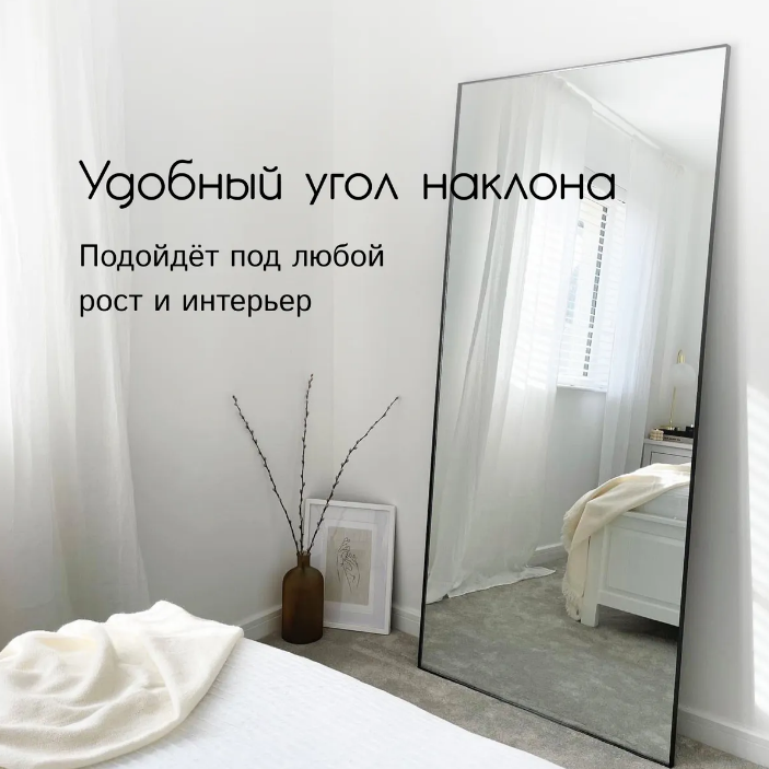 Зеркало настенное напольное большое Glass Memory Parallax в полный рост 200x100 см в металлической раме черного цвета в Пушкине